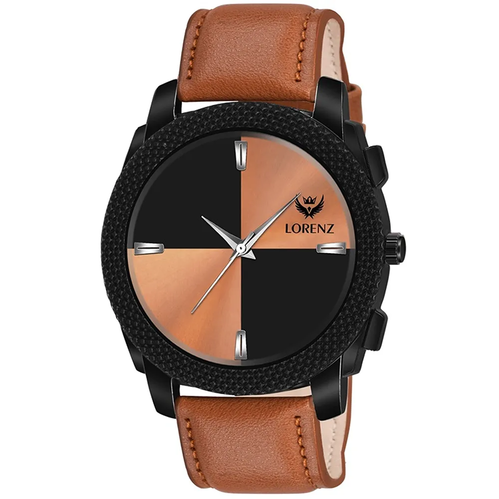 Lorenz Watch Two Tone Dial & Brown Leather Strap Analogue Watch for Men
