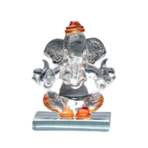 CraftIndia Orange and Transparent Double Sided Crystal Car Ganesha Showpiece